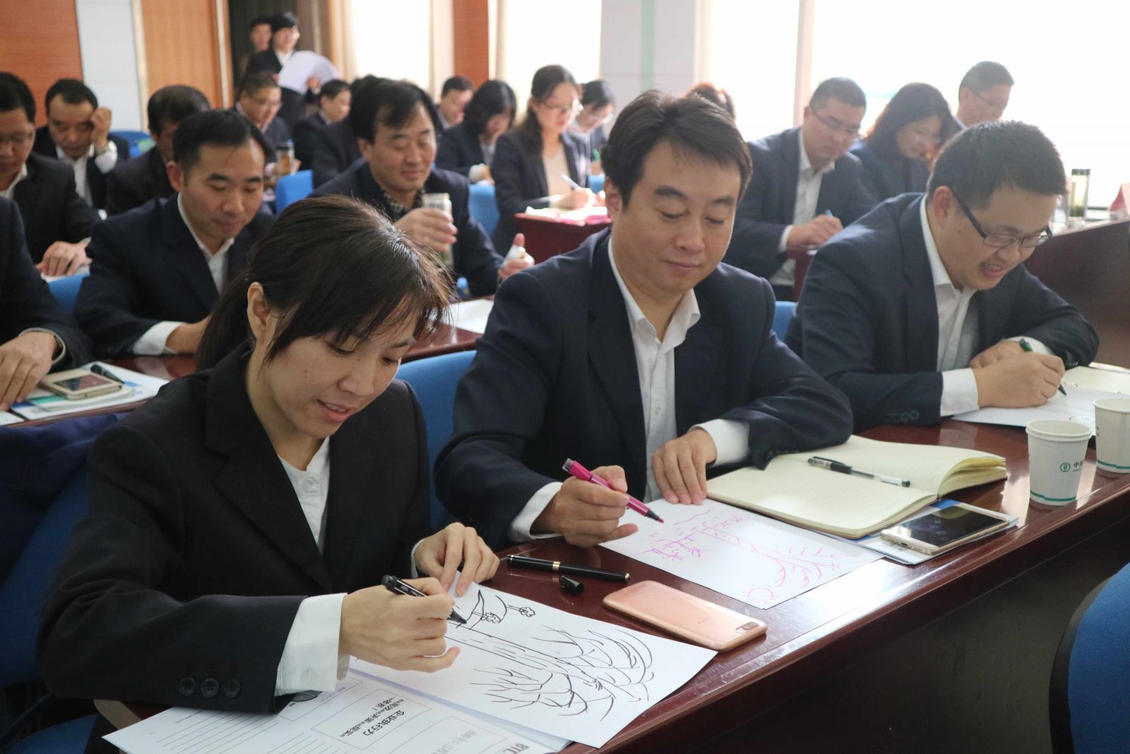 2017年10月,BTC陆家嘴银行培训中心小分队来到了江苏淮安,携手农业银行淮安分行开展了中层干部暨网点主任领导能力提升的培训课程。本次主讲老师王老师是华东师范大学的心理学博士,善于将心理学的知识运用于管理。课程围绕三个版块展开,管理者的基本原理与概念、如何提升管理水平,以及如何提升领导水平。每个版块涉及到的知识面都很广,非常丰富。包括领导力四种风格、CW情境领导、领导力的五级提升、时间管理、中心状态、项目管理、双轮CPU、目标管理SMART、3F法则、PMP、知人善任、团队协作五种障碍等等。