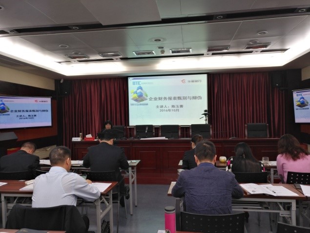 由BTC陆家嘴银行培训中心在华夏银行泰州分行举办的《企业财务报表分析与甄别》培训班,于10月15日在泰州分行三楼道德讲堂开课。